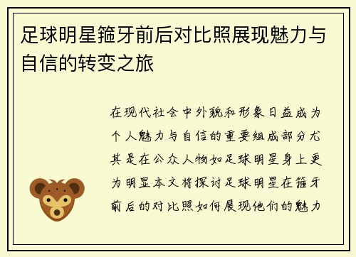 在当今社会,足球不仅是一项运动,更是一种文化和精神的象征。李亚作为一位杰出的青年代表,与众多足球明星携手,共同谱写了一段绿茵传奇,展现了青春的风采与拼搏的精神。在这篇文章中,我们将从四个方面深入探讨这一主题,包括李亚的个人成长与成就、与足球明星的合作意义、青春风采的体现,以及拼搏精神在体育中的重要性。这些元素交织在一起,构成了一幅充满活力和希望的画卷,让人们看到了年轻一代不懈追求梦想的决心与勇气。...